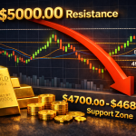 On the upside, if gold price holds above $5067.00 and continues to show bullish price action, the next resistance level will be around $5150.00. This resistance near $5150.00 was previously a selling zone and may attract sellers again when price reaches there. If gold price manages to break above $5150.00 and sustain above it, the next resistance zone will be around $5250.00. The $5250.00 area is a strong resistance because it is close to the previous distribution zone before the major fall started. A sustained move above $5250.00 would indicate strong bullish momentum.